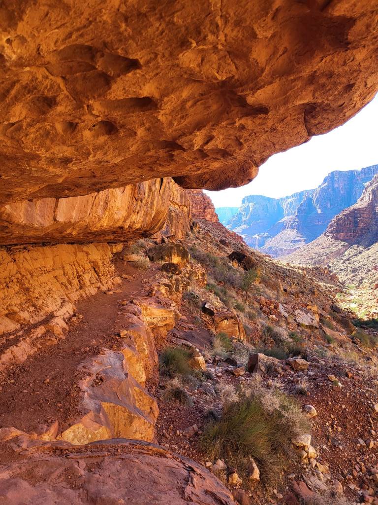 When I came to the overhang, I encountered a group of six hikers with camping gear heading in and helped them navigate around a section of the trail. It was clearly their first time and I worried that like me, they might be getting in over their heads. Looking at the time, I hoped they would make it to camp before dark. They seemed completely unaware that they were only about a third of the way there.