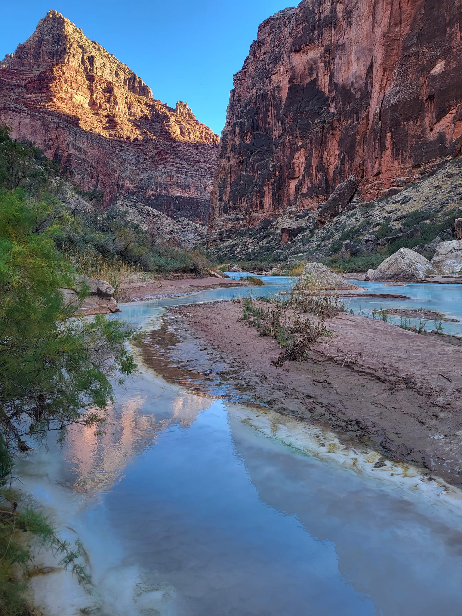 I wandered a bit, marveling at how much easier walking was without the extra pounds on my back. While my toes hurt and my thighs were akin to wet noodles, I had no real issues exploring around the helipad and quickly found the spring. The spring was clear, unlike the milky blue water of the Little Colorado, and strangely warm. I filled my water bottle and sat peacefully on a rock, taking in the grandeur of the massive red rock canyon walls around me, the primitive wildness of it all, and this peaceful little nook. I then headed back to camp.
