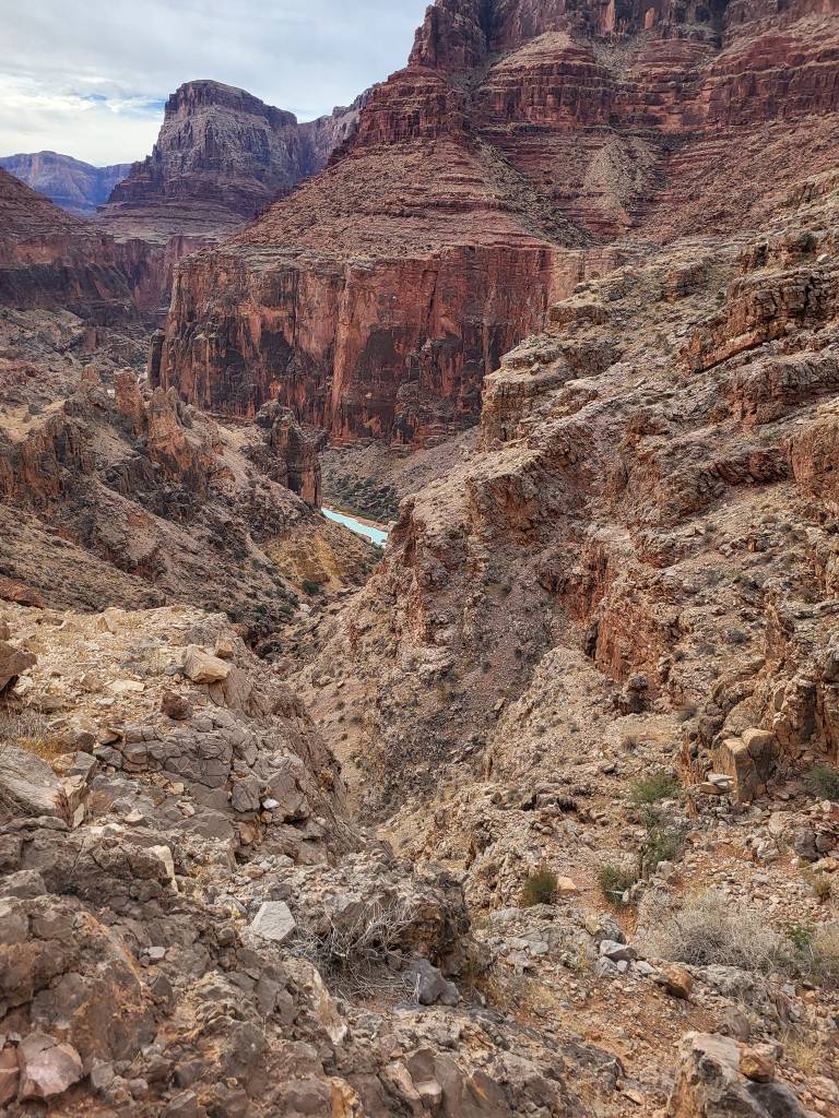 I encountered a cute, happy couple briskly walking the other direction, out of the canyon. They told me to enjoy the river and said I should be the only one there. I thanked them and wished them a safe trip out, smiling and trying to act as though I wasn’t near death. They both had day packs and clearly hadn’t camped overnight. About ten minutes later I encountered another couple, which made sense given there were two cars at the trailhead. they also smiled and wished me well. “Am I getting close?” I asked, trying not to sound desperate. “Oh yes”, the girl replied, “probably another 40 minutes and the next little stretch is easy”.