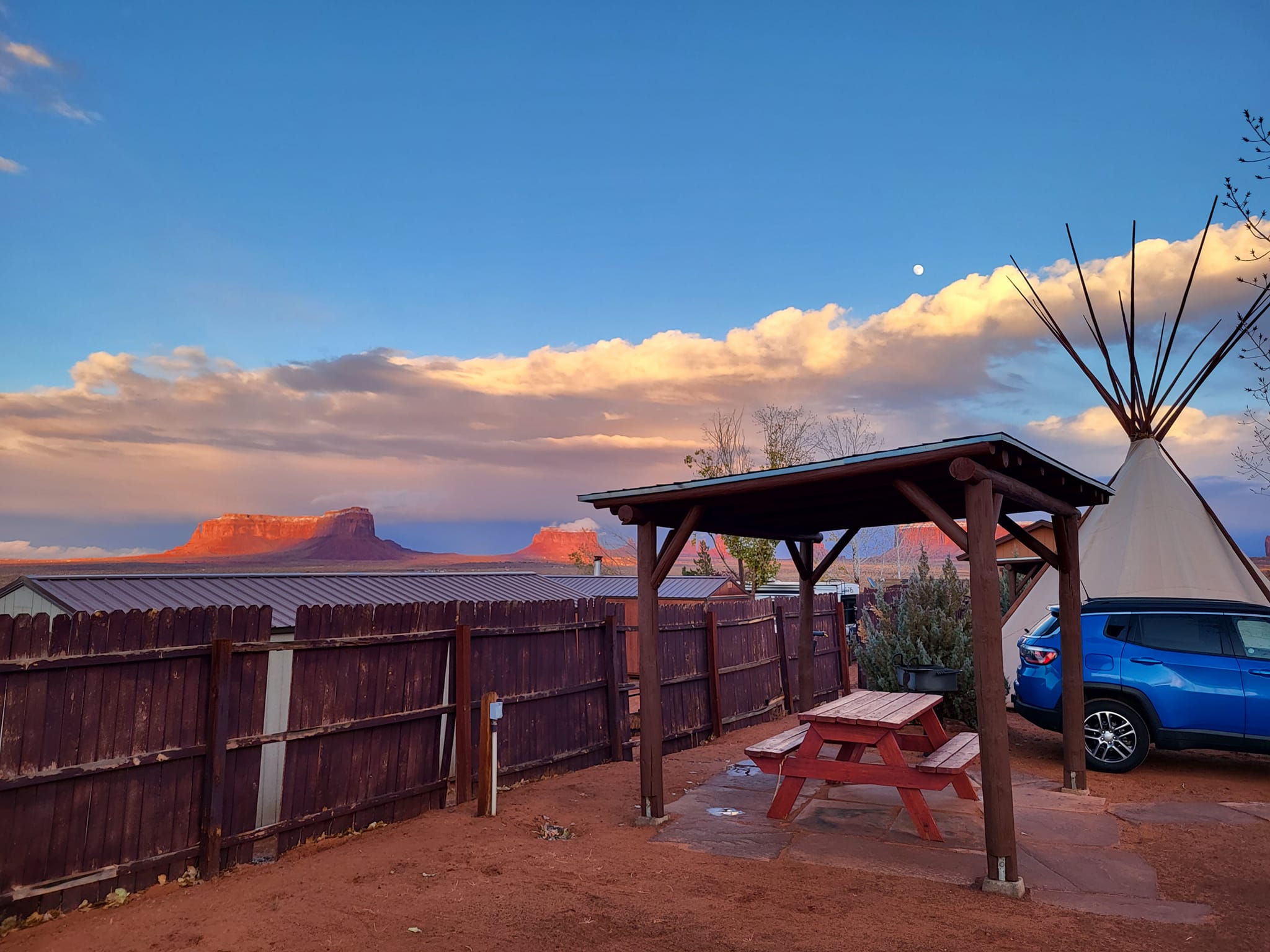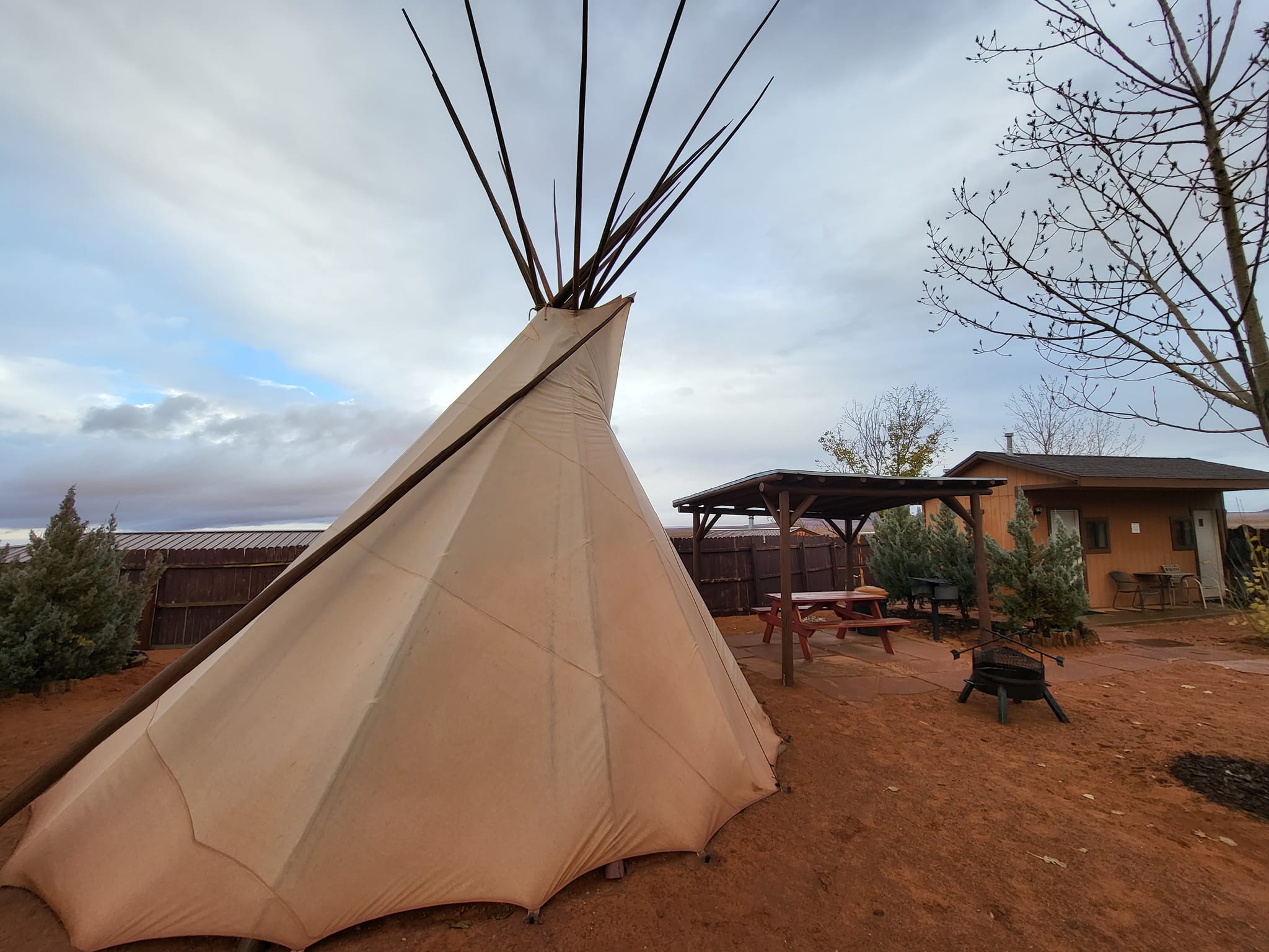 Pulling up at the small campground circle comprised of several teepees, a small cottage and a handful of tent-sites, I smiled. Aaron, the Navajo host, helped me get situated. I hobbled awkwardly, retrieving my belongings while he brought me extra blankets and space heater, noting that it was going to be in the low 20s that night. He then had me follow him to the cottage, which he and his father had built, and showed me the Navajo art that lined the walls, several paintings, handmade rugs and pieces of pottery made by his own family. When we returned to my teepee, a small black dog with snaggle-teeth lay on the second twin-sized bed. “Oh Peewee!” exclaimed Aaron, and he explained that Peewee was a stray that he was caring for, along with several other dogs and cats on the property. I quickly assured Aaron that Peewee could stay and he never moved from that spot until sunrise the next morning.